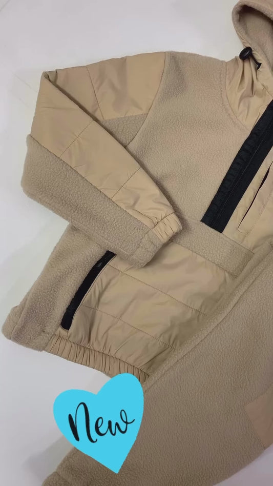 Boys Two-Tone Khaki 3pc Zipped Jacket Set