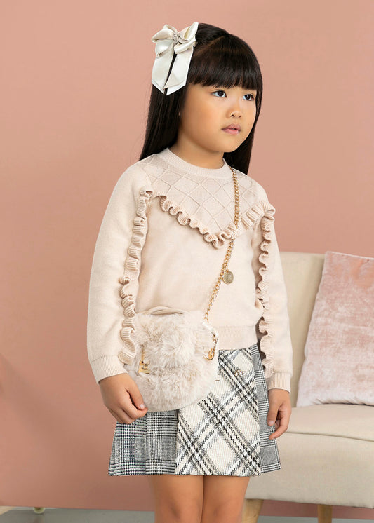 Abel & Lula Girls Grey & Beige Tartan Check Skirt