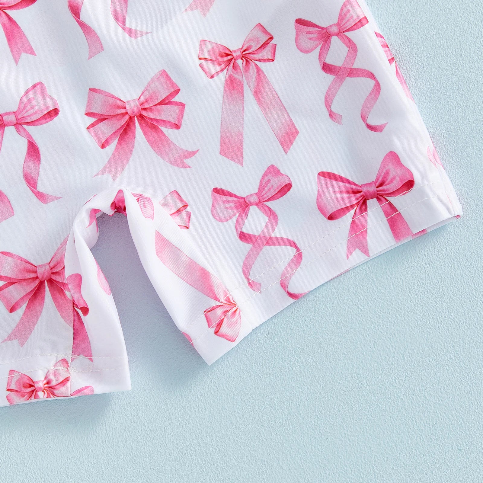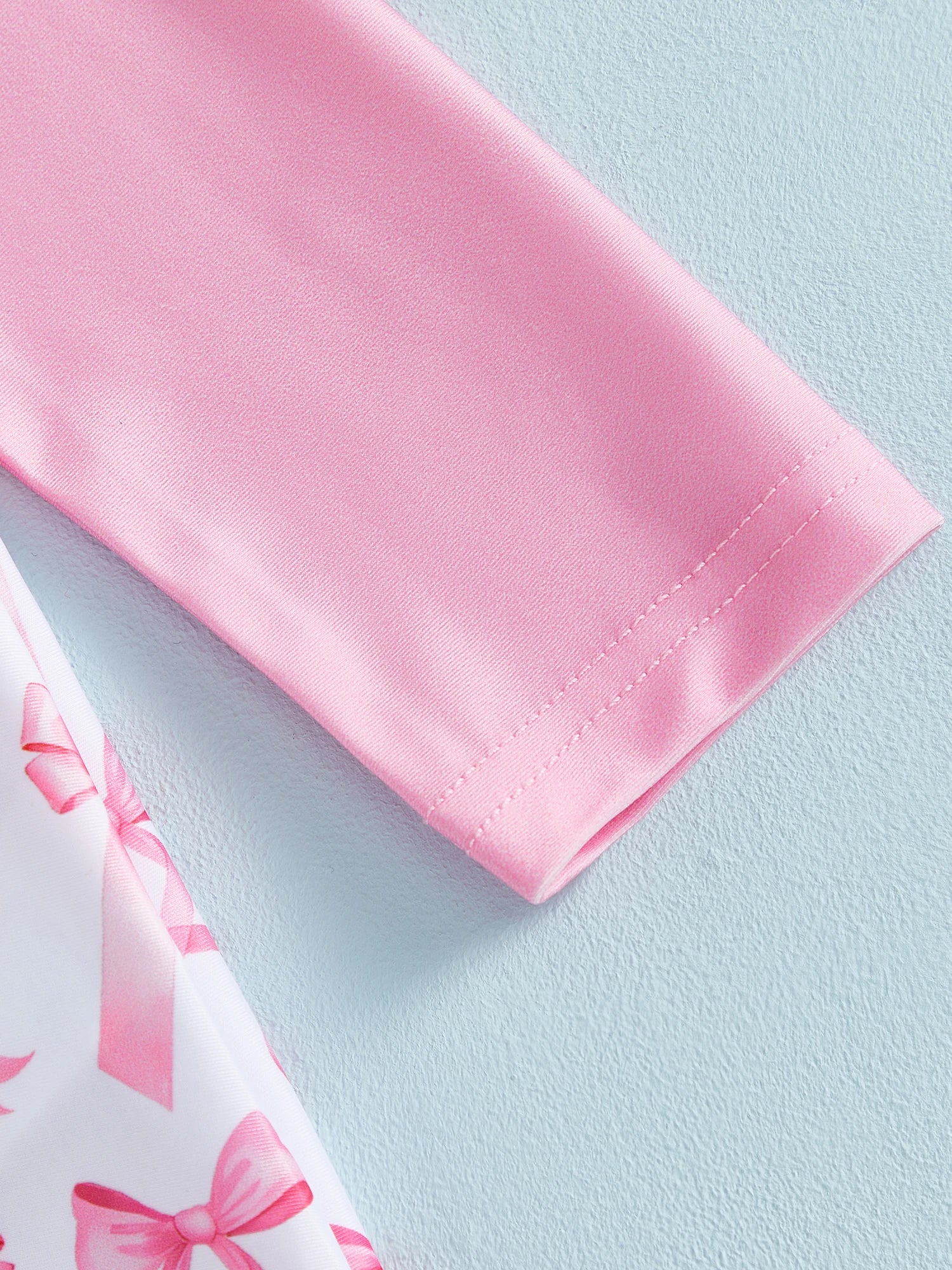 All-over pink bow print with contrast sleeves