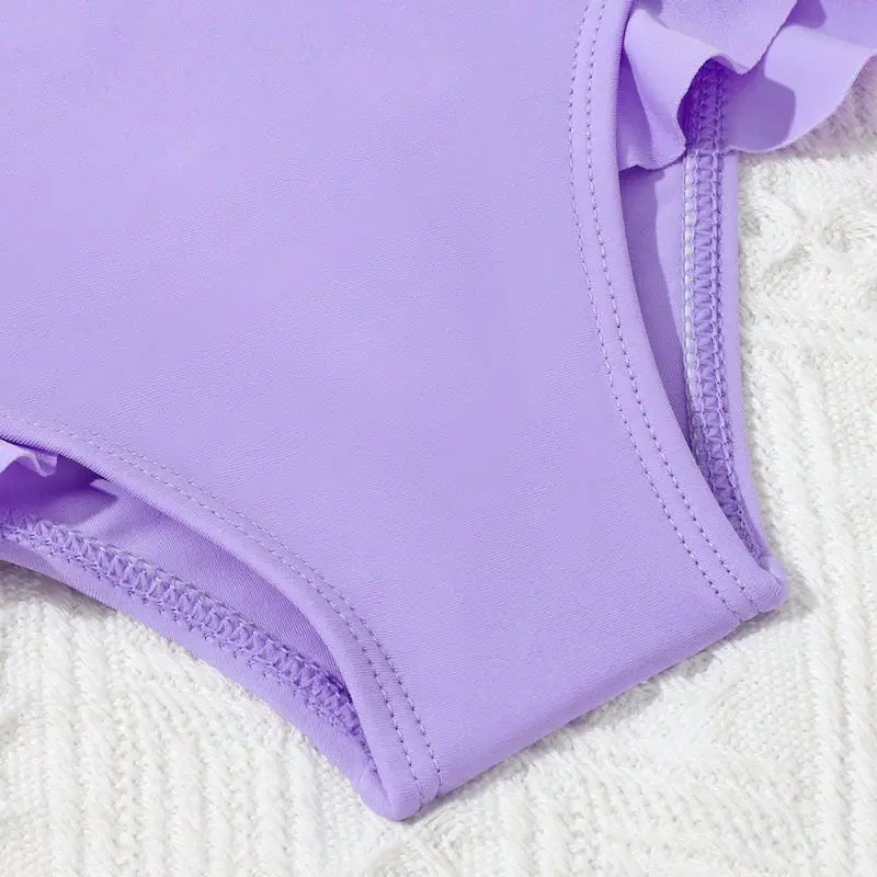 The soft, stretchy fabric feels gentle against delicate skin, while the playful ruffle detailing adds a charming finishing touch. Ideal for beach holidays, pool days, or sunny getaways, this set is as functional as it is adorable.