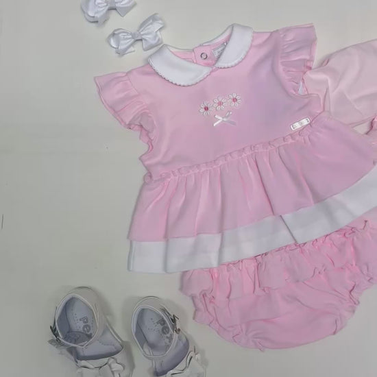 Amore Baby Girls Pink Frill Romper Dress with Bloomers