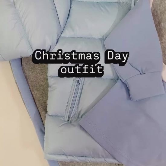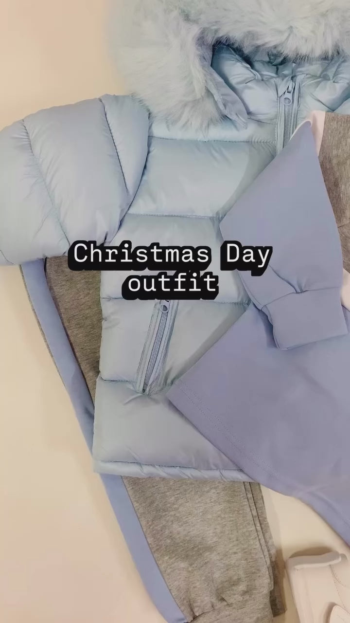 Boys three-tone grey, white and blue buttoned collar long sleeve top co-ord with matching trousers set.