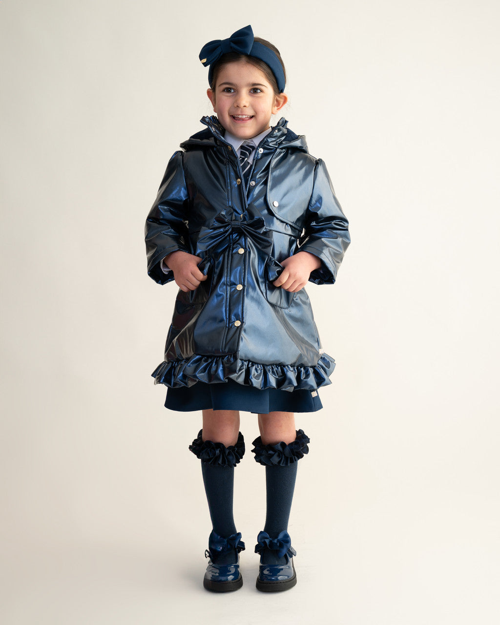 Caramelo Girls Navy Bow Rain Mack – Water Proof & Cosy Outerwear for School Days