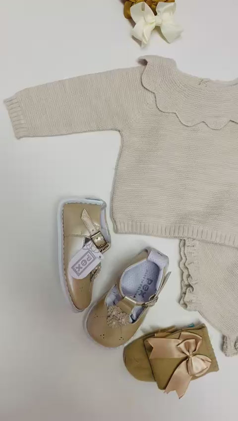 Martin Aranda Girls Knitted Collar Stone 3PC Set