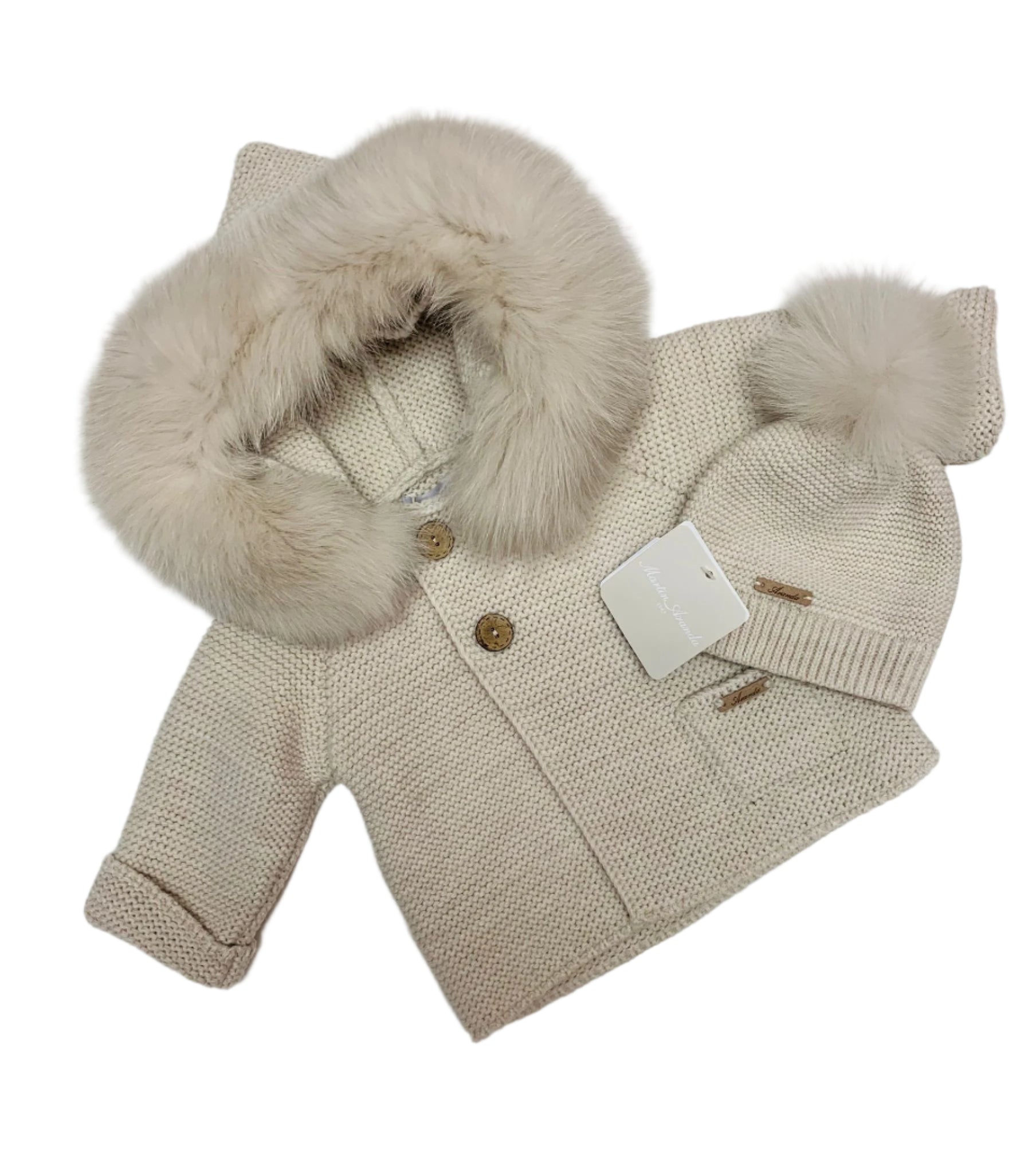 Martin Aranda Boys Knitted Stone Real Fur Hooded Coat