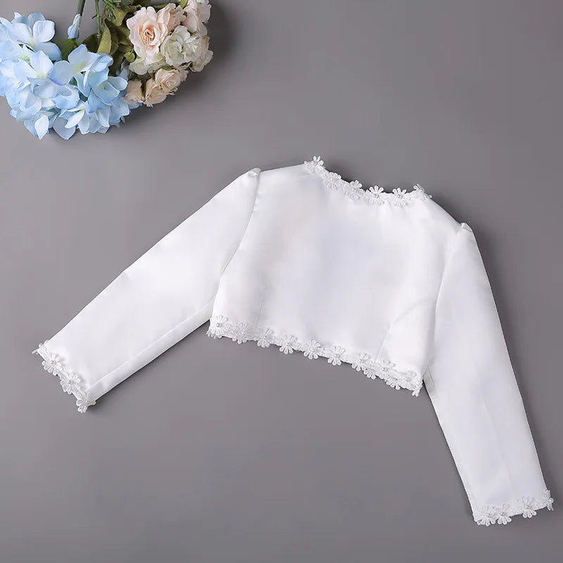 Girls cotton bolero cardigan with daisy finish, perfect to compliment our Christening Dress.