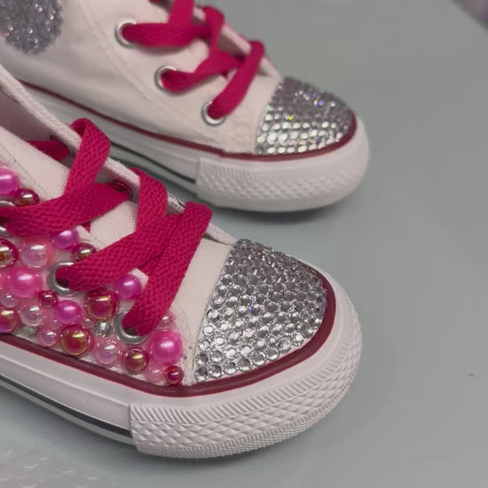 Dolly Bling Canvas Baseball Boots Fushia Pearls