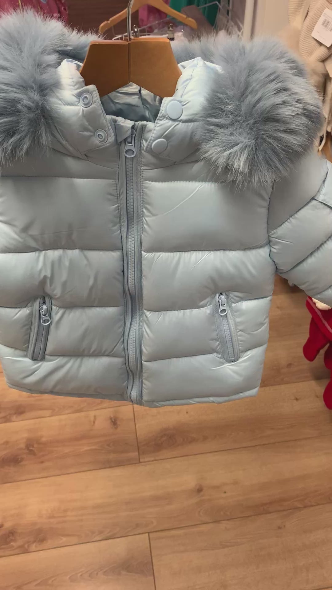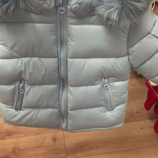 Winter coat, zip fasten with button finish and beautiful faux fur hood.