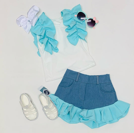 Girls Mint Frill Shorts Set