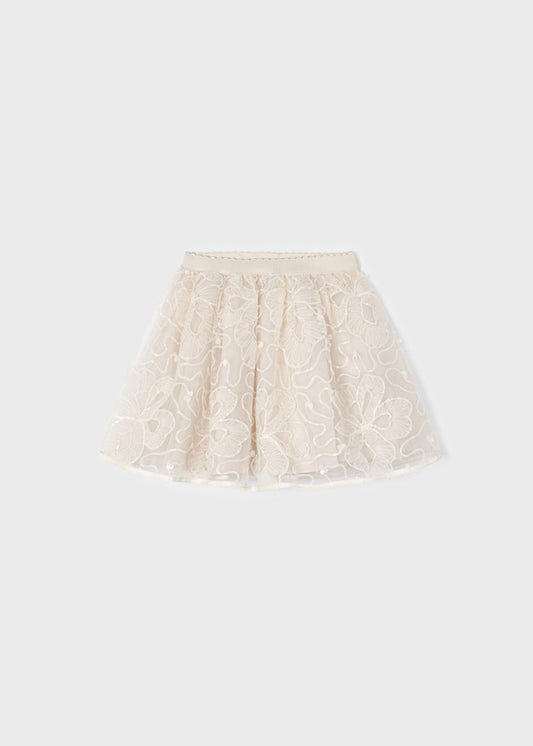 Mayoral Girls Ivory Sequin & Tulle Floral Skirt