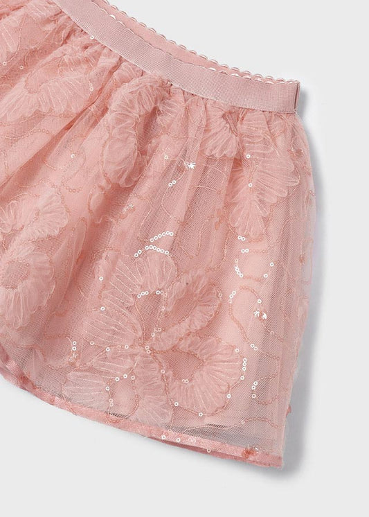 Mayoral Girls Pink Sequin & Tulle Floral Skirt
