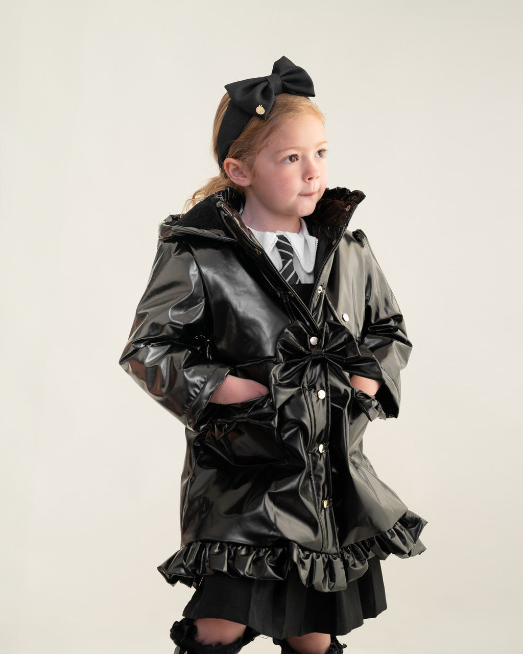 Caramelo Girls Black Bow Rain Mack – Water Proof & Cosy Outerwear for School Days