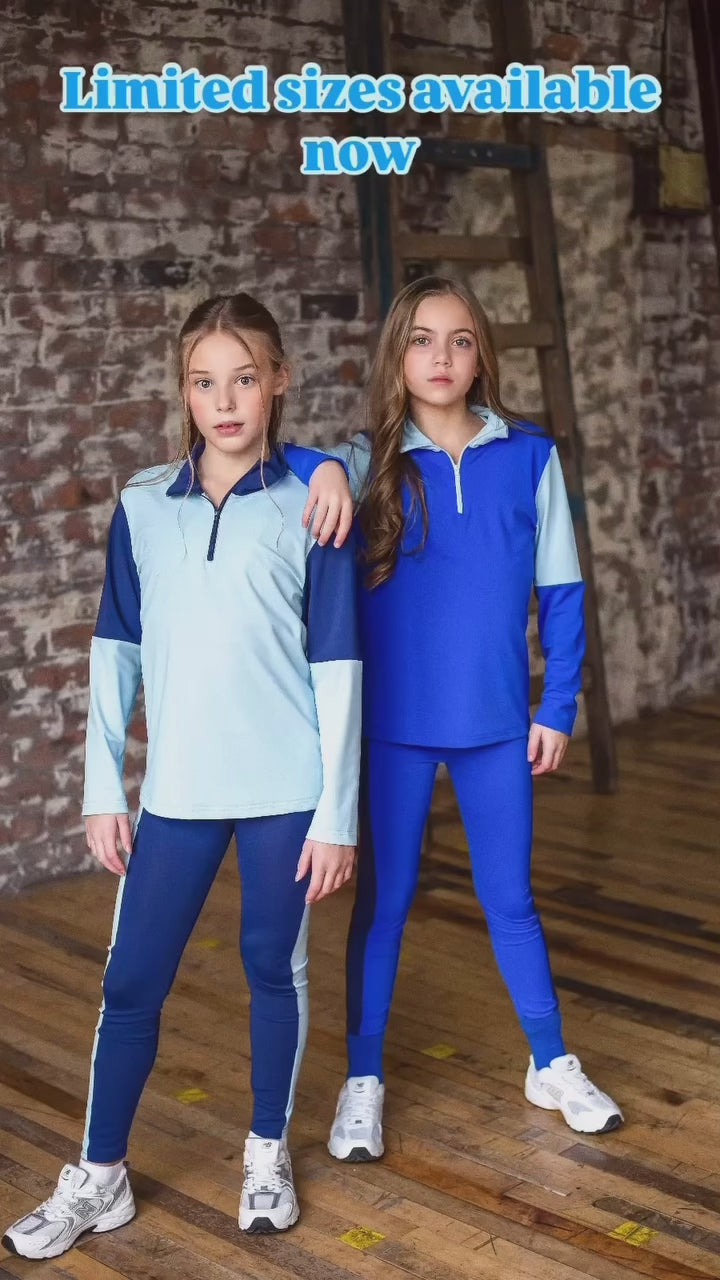 Dolly Royal Blue Three Piece Gym Set includes Leggings, crop top and matching quarter zip top, aimed at our teen customers we know this will be a big hit with old and young alike!