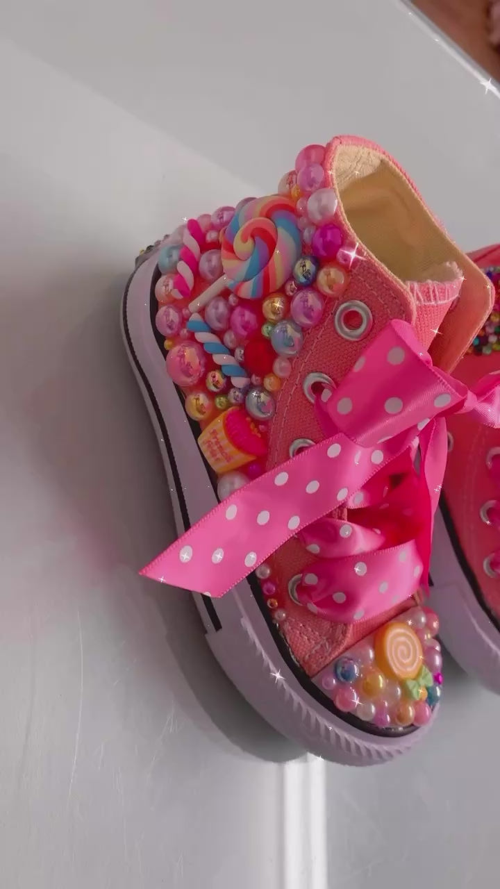 Bling Baseball Boots Peach Candy Cane Canvas are just too funky, made to order and finished in peach with the most amazing ribbon lace.