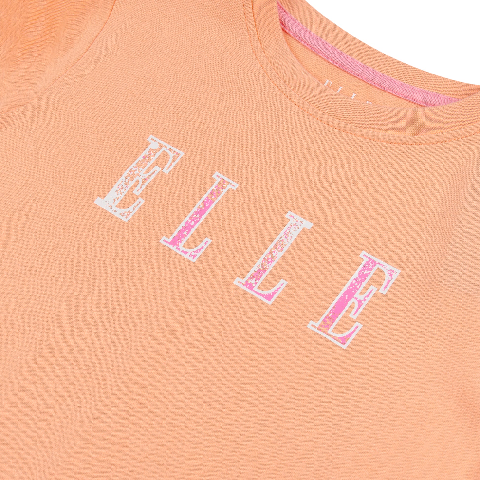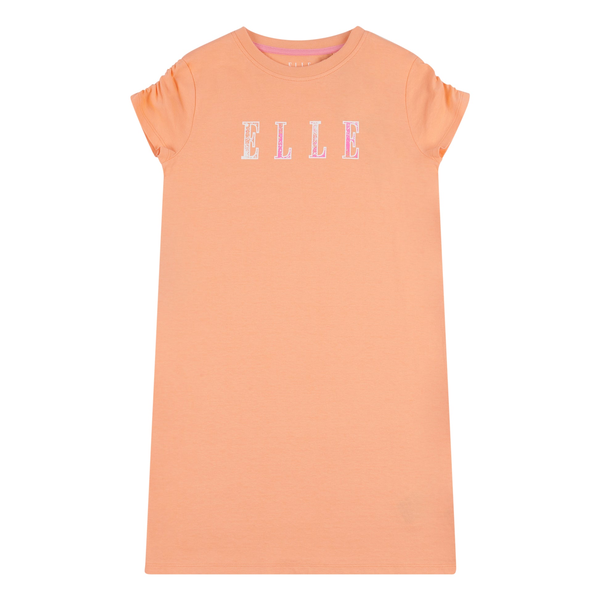 ELLE Girls Cantaloupe Ruche Cap Sleeve Logo Dress