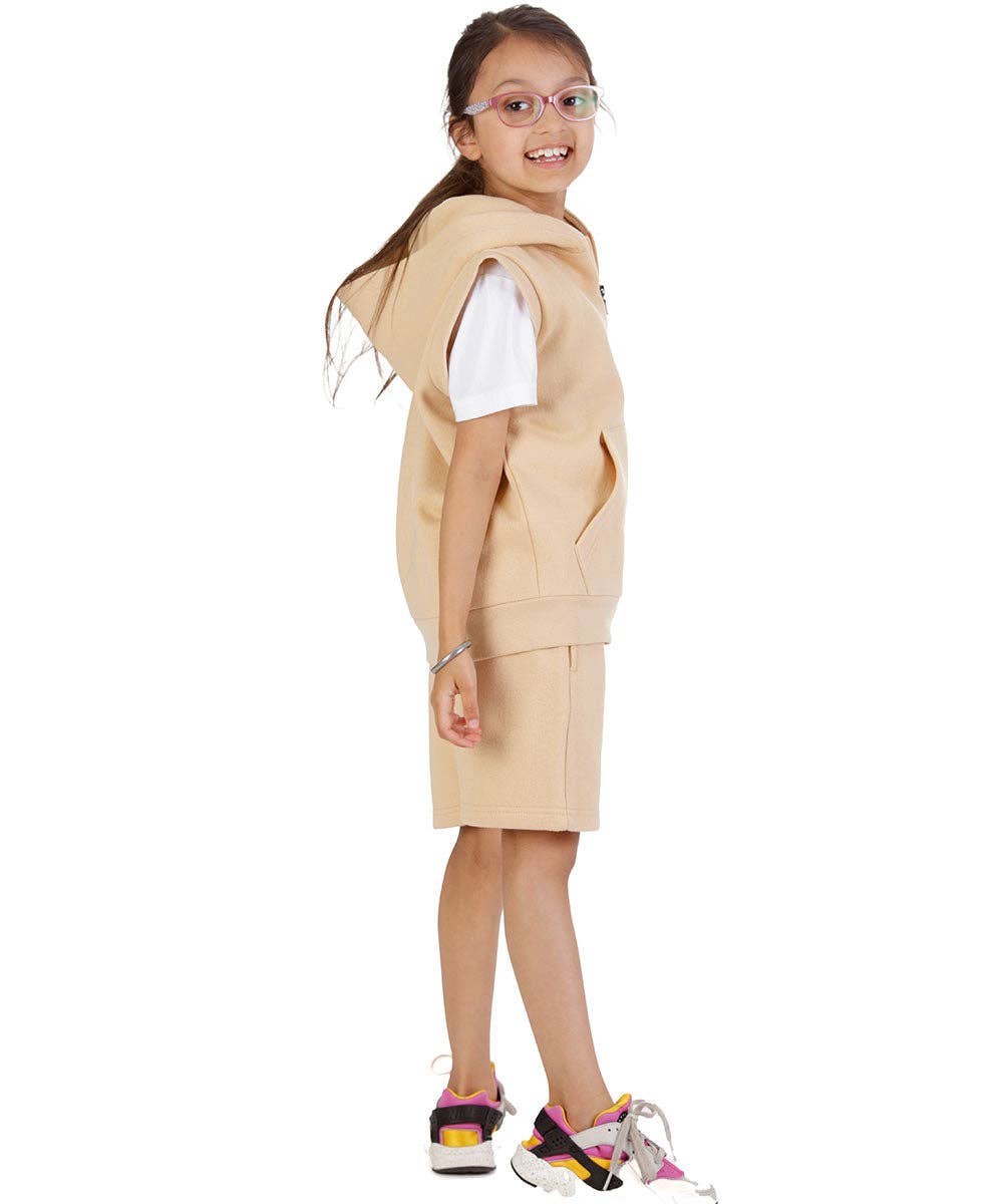 Kids Nude 2-Piece Gilet and Shorts Set: Nude
