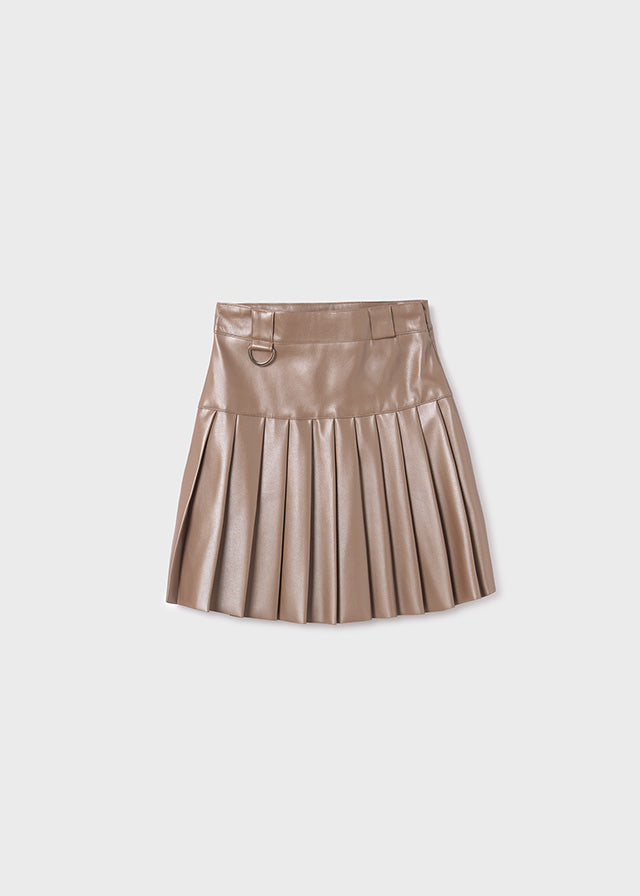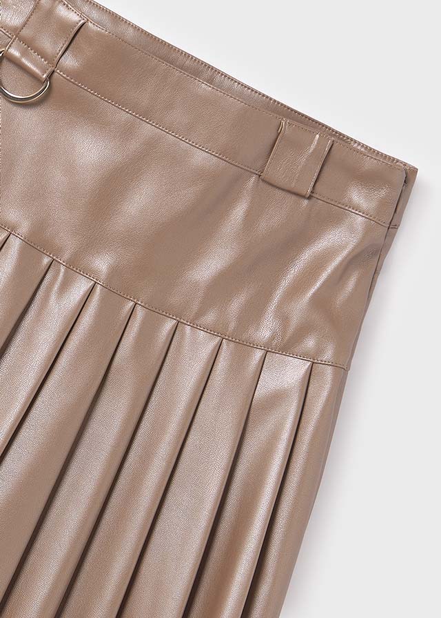 Mayoral Girls Mocha Pleated Faux Leather Skirt