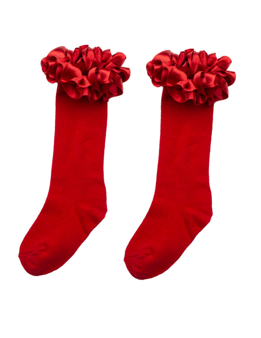 Caramelo Kids Red Ruffle Ribbon Knee High Socks