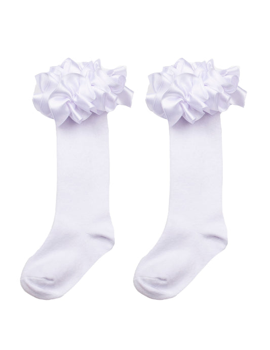 Caramelo Kids White Ruffle Ribbon Knee High Socks