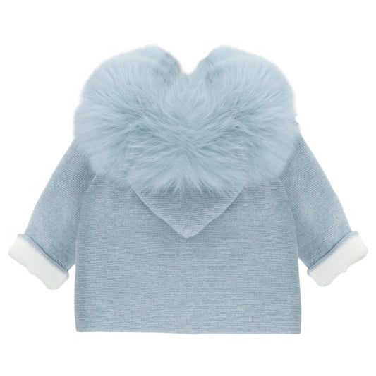 Martin Aranda Boys Knitted Blue Real Fur Hooded Coat