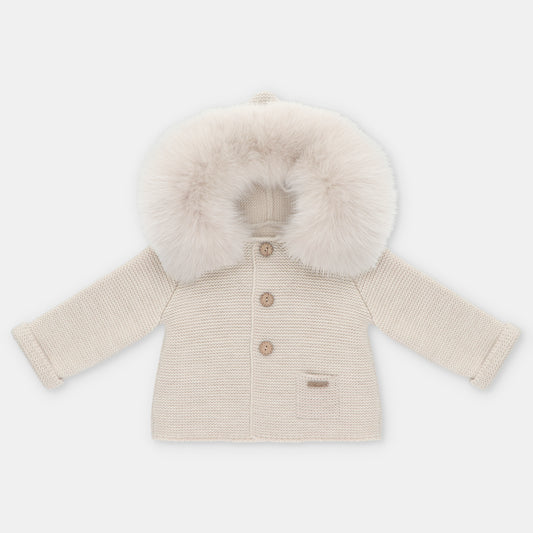 Martin Aranda Boys Knitted Stone Real Fur Hooded Coat