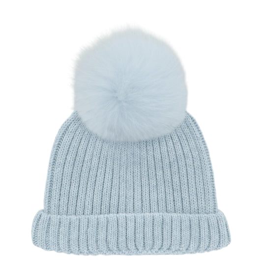 Martin Aranda Boys Knitted Blue Real Fur Hat