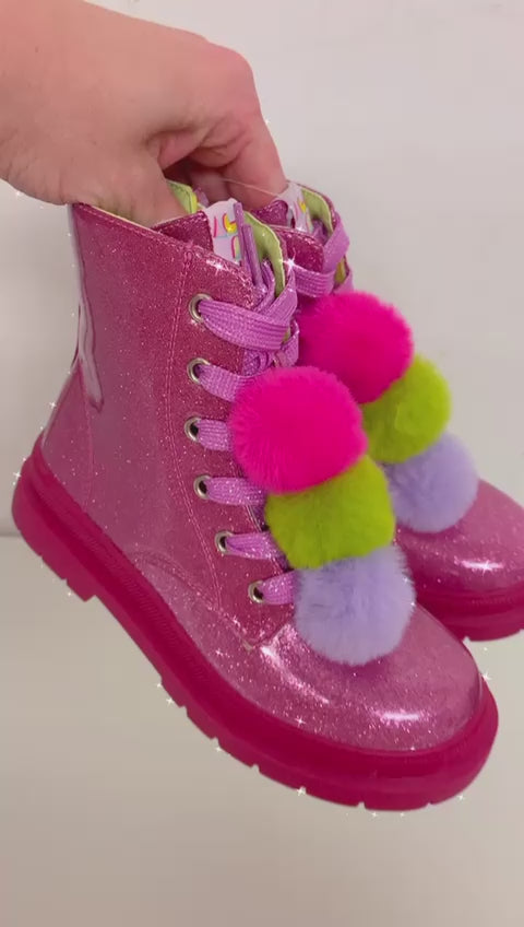 Agatha Ruiz de la Prada Fushia Pink Patent Pom Pom Boot
