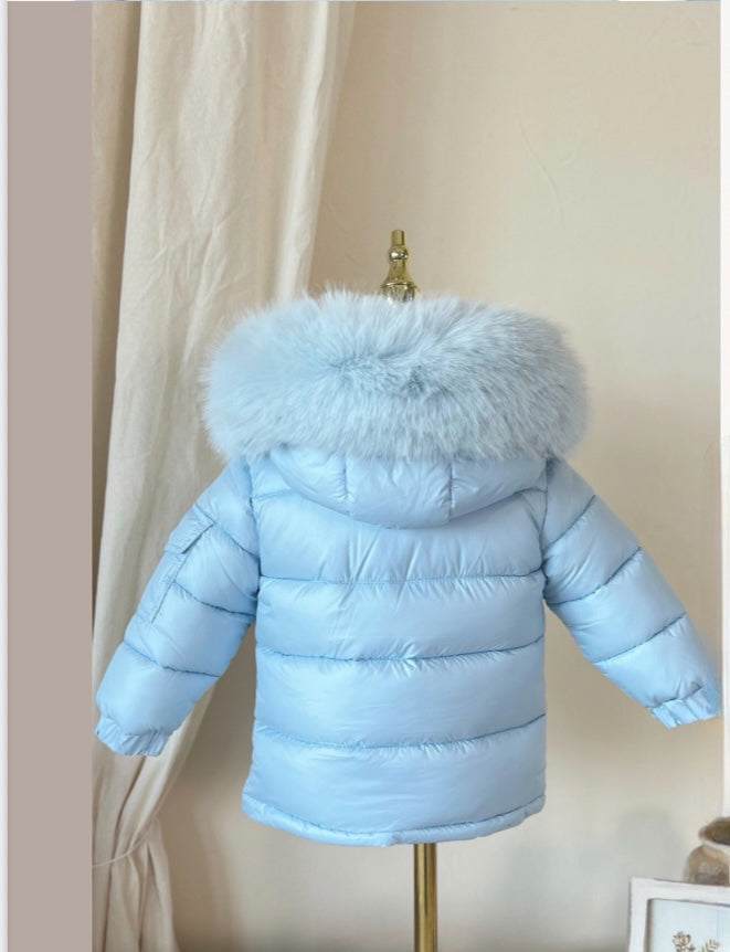 Girls winter coat, zip fasten with button finish and beautiful faux fur hood.