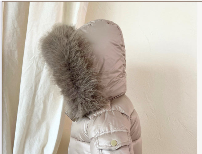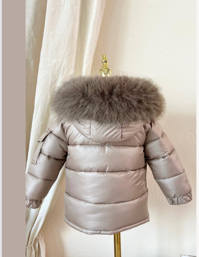 Girls winter coat, zip fasten with button finish and beautiful faux fur hood.