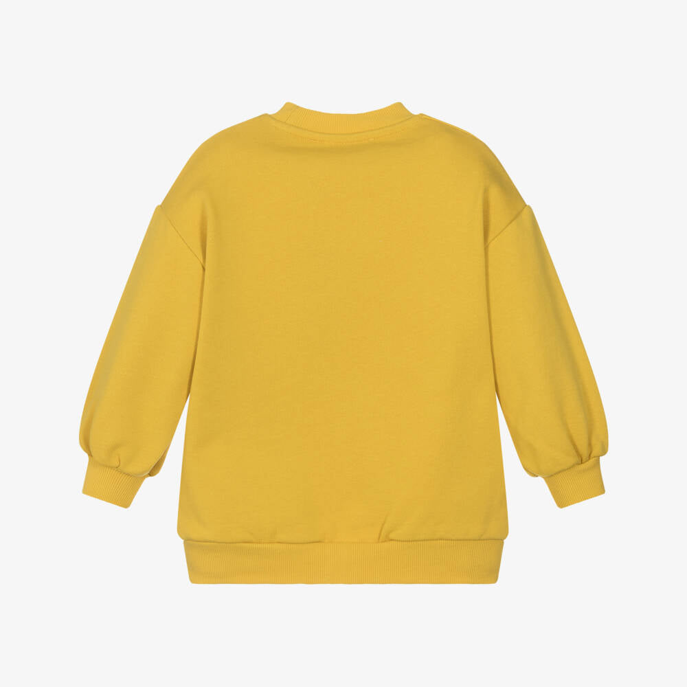 Yellow sweatshirt for girls by Agatha Ruiz de la Prada, made in soft, mid-weight cotton jersey. Casual and cosy, it has a stylish, relaxed fit, useful front pockets and ribbed trims. There is a bold pink felted flower motif on the front, with a green embroidered logo for added designer appeal.