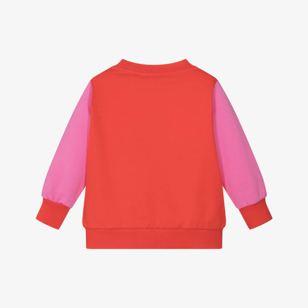 This vibrant red and pink sweatshirt for girls by Agatha Ruiz de la Prada brings a playful touch to her casual wardrobe. Made in comfortable cotton jersey with a soft brushed feel inside, it features bold floral appliqués on the front in vibrant, contrasting shades for a standout look.