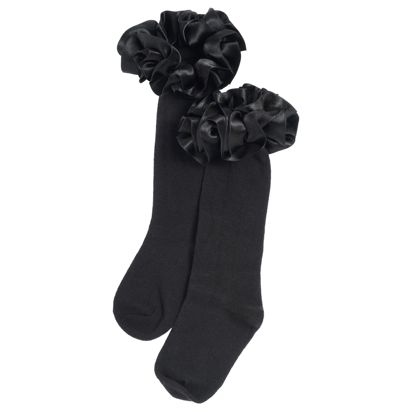 Caramelo Kids Black Ruffle Ribbon Knee High Socks