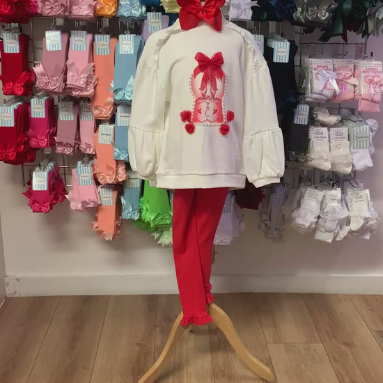 Caramelo Kids Girls Red Snow Globe Leggings Set