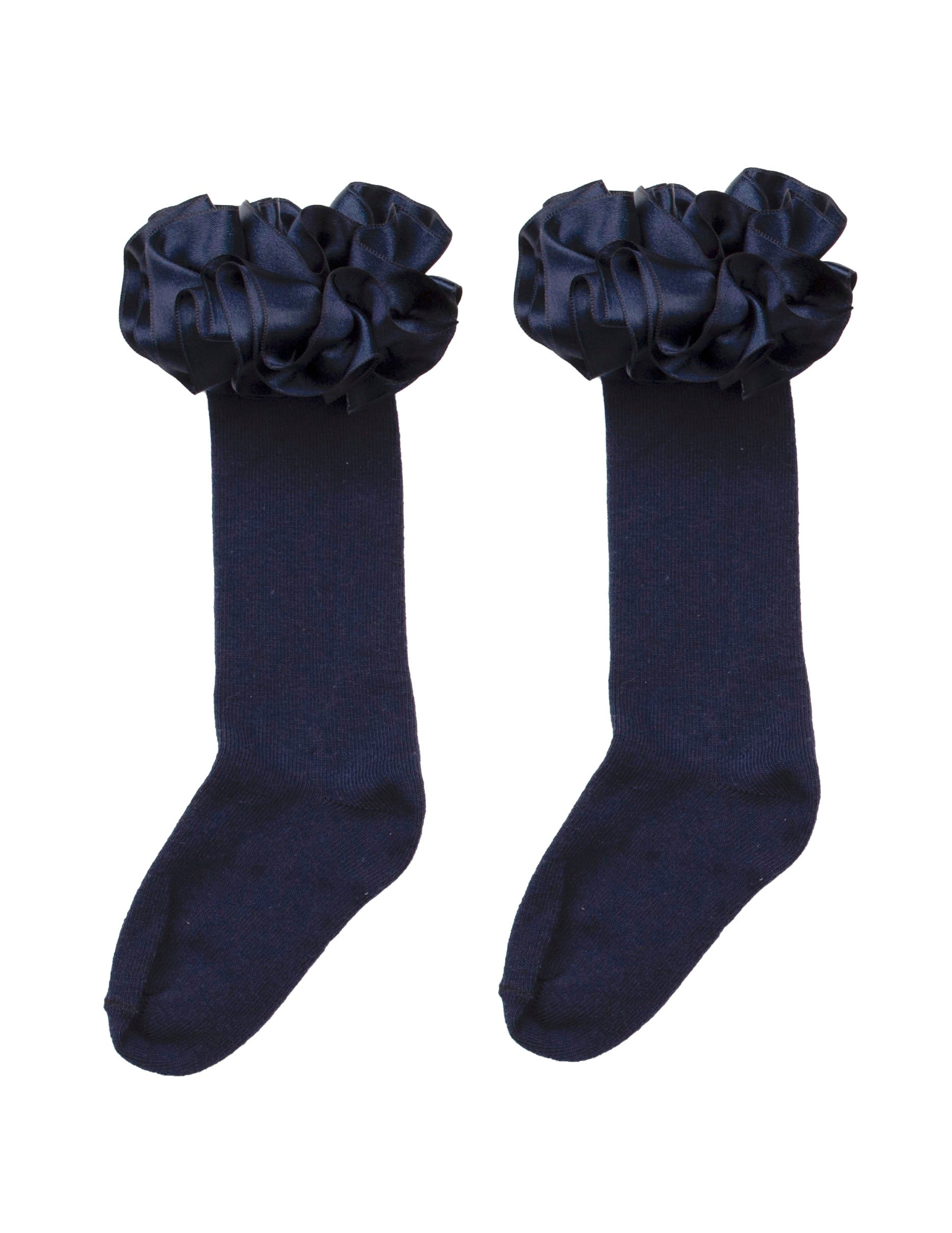 Caramelo Kids Navy Ruffle Ribbon Knee High Socks