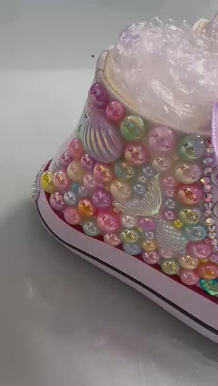 Bespoke jewelled canvas pumps, perfect for any occasion.