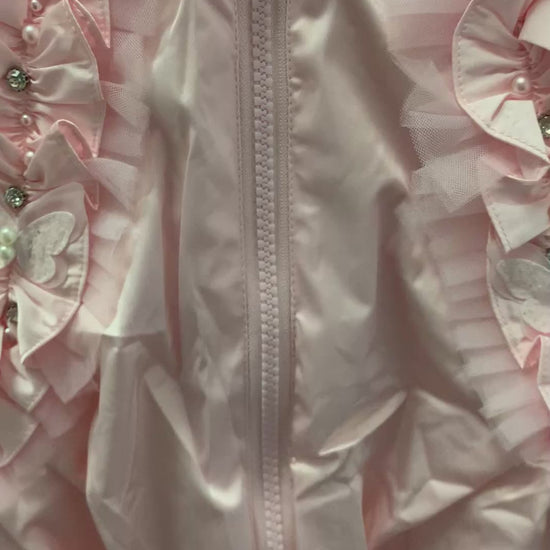 Baby Pink A-line Coat with faux fur hood
