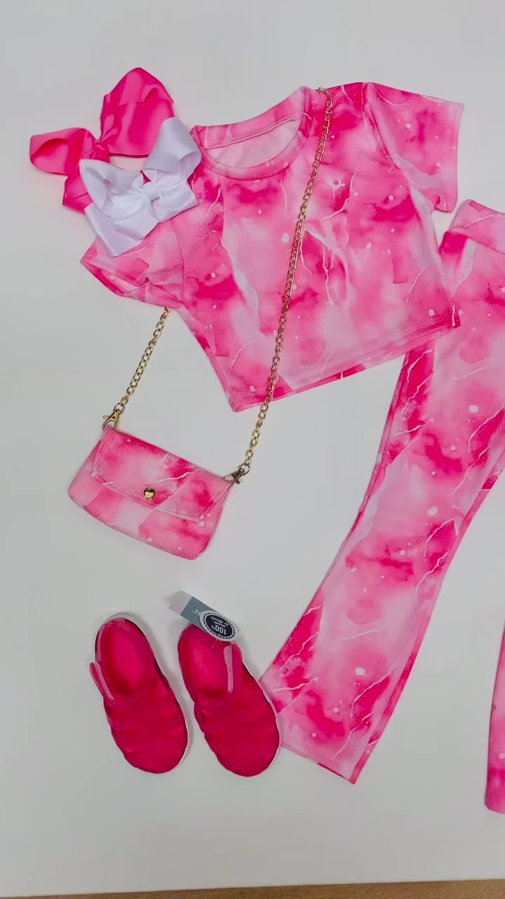 Girls Hot Pink Tye Dye Flare Set