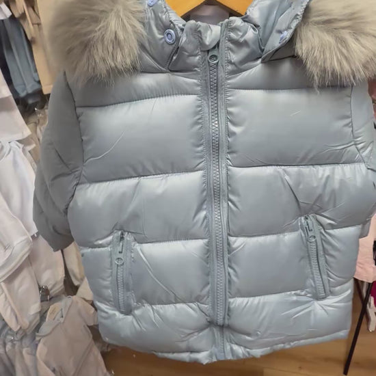 Girls winter coat, zip fasten with button finish and beautiful faux fur hood.