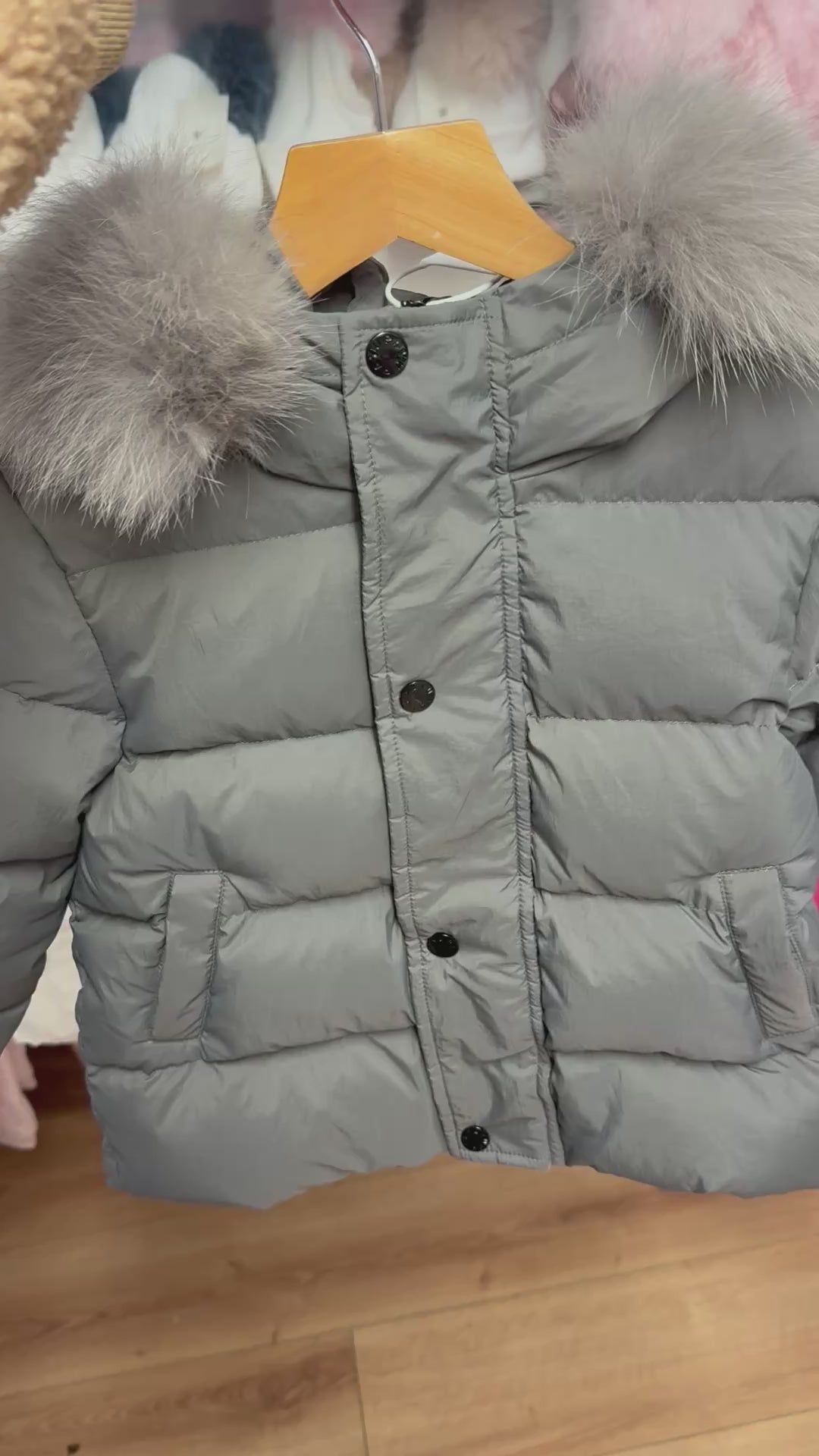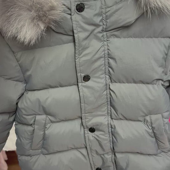 Winter Coat Grey Matt finish Grey Racoon fur Hood