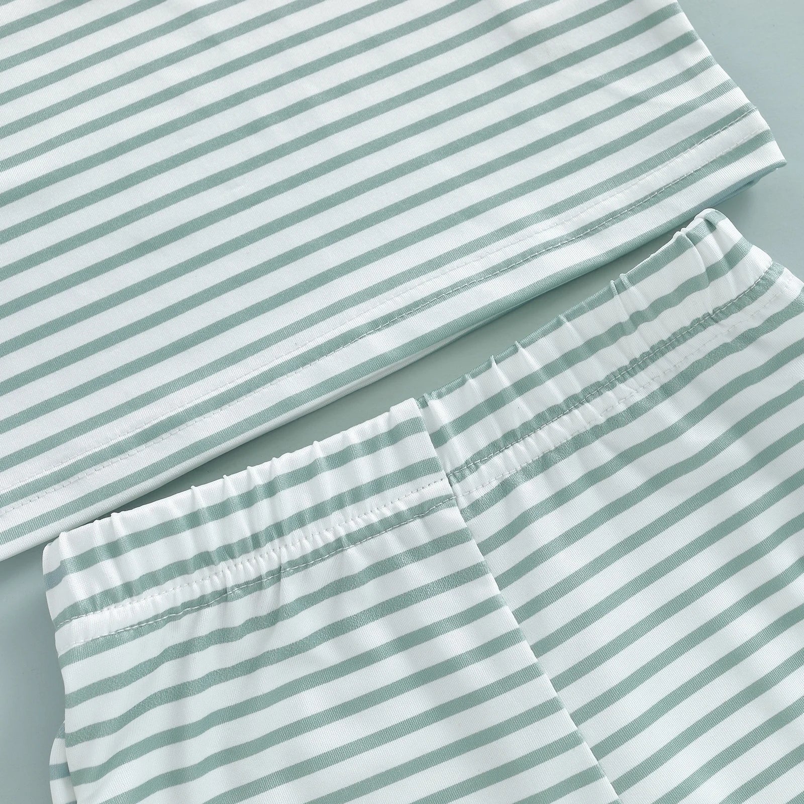 Designed for sunny adventures, this boys 2-piece swim set in green striped offers comfort, ease, and timeless style for babies and toddlers aged 3 months to 4 years.