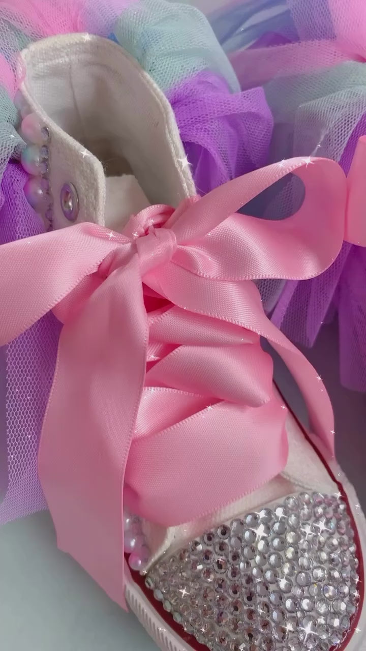 Dolly Bling Canvas Baseball Boots Tulle Pastel Pearls